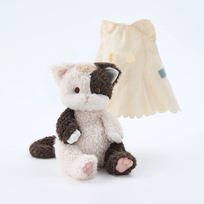 The "Ghost Cat" is inspired by those tender, introverted souls who observe the world from the shadows. Curious yet cautious, it hides under its little cloth hood, believing that even within its safe space, it can explore life quietly and bravely.