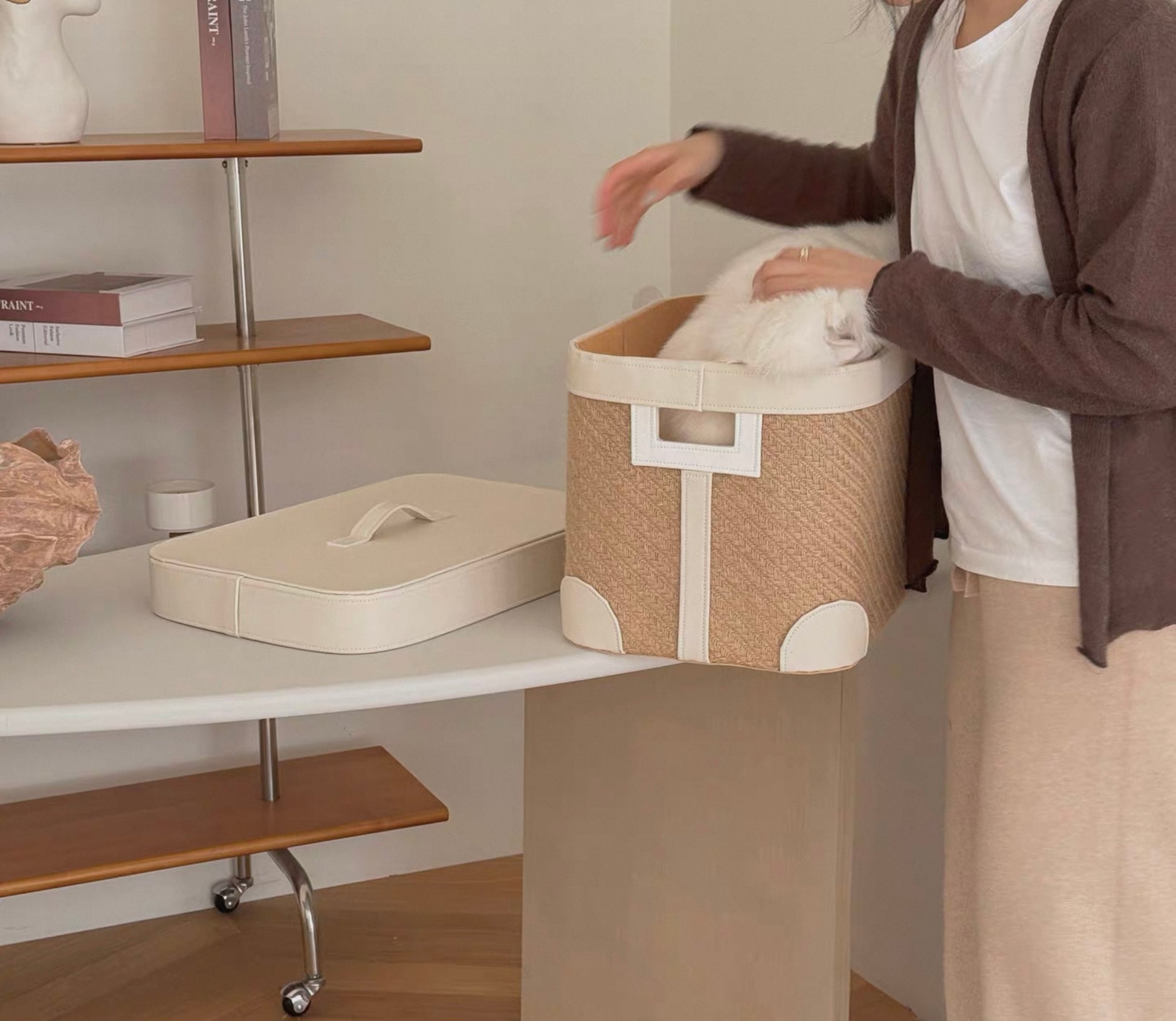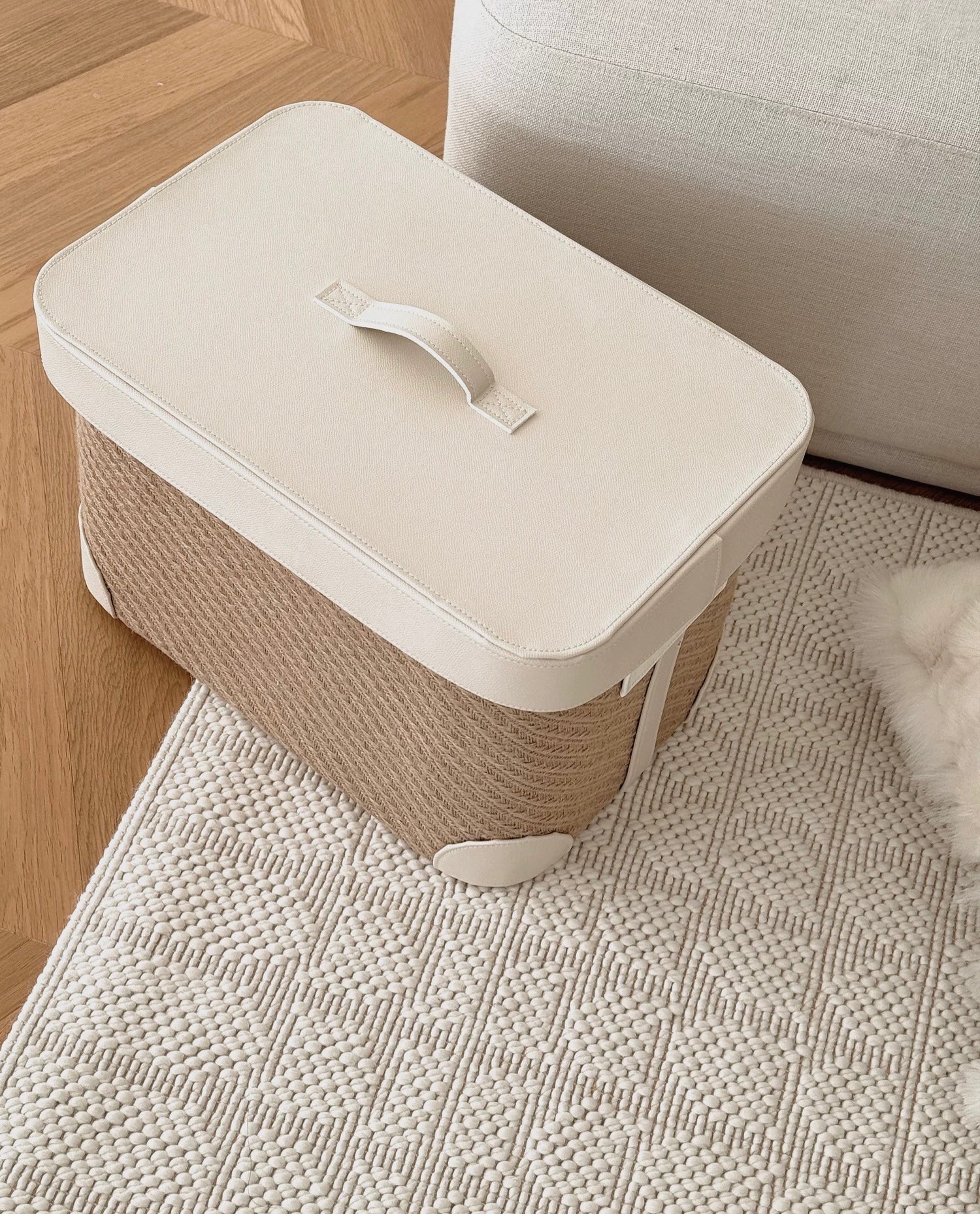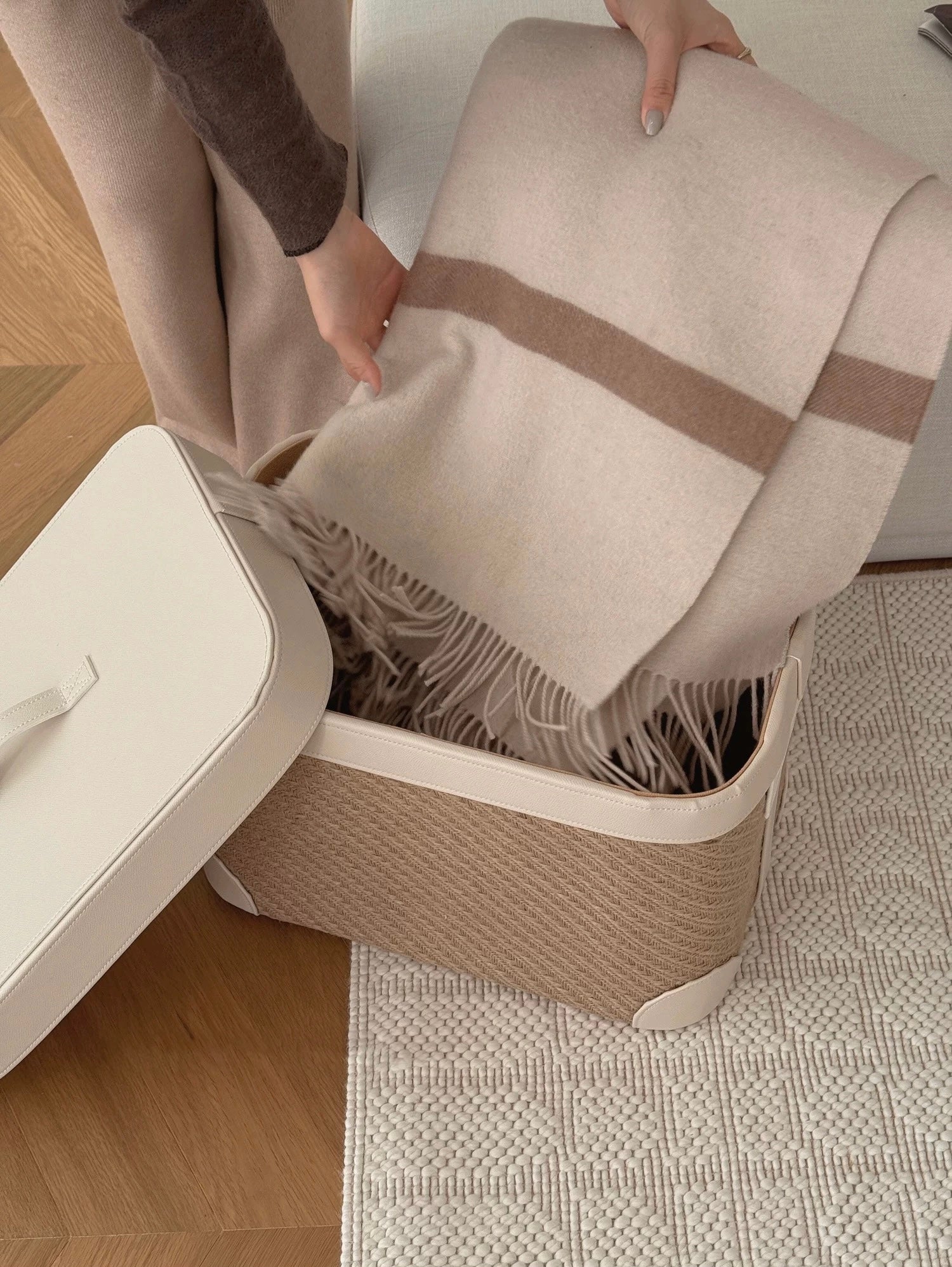 Elevate your home with this handwoven jute storage box in cream white, finished with smooth calf leather details. Both elegant and practical, it keeps your space organized while adding a touch of natural texture. Designed to be dust-resistant, moisture-proof, and antibacterial, this versatile piece works beautifully in the living room, bedroom, or entryway - perfect for storing blankets, books, or everday essentials. A timeless storage solution that blends quiet luxury with functional design.