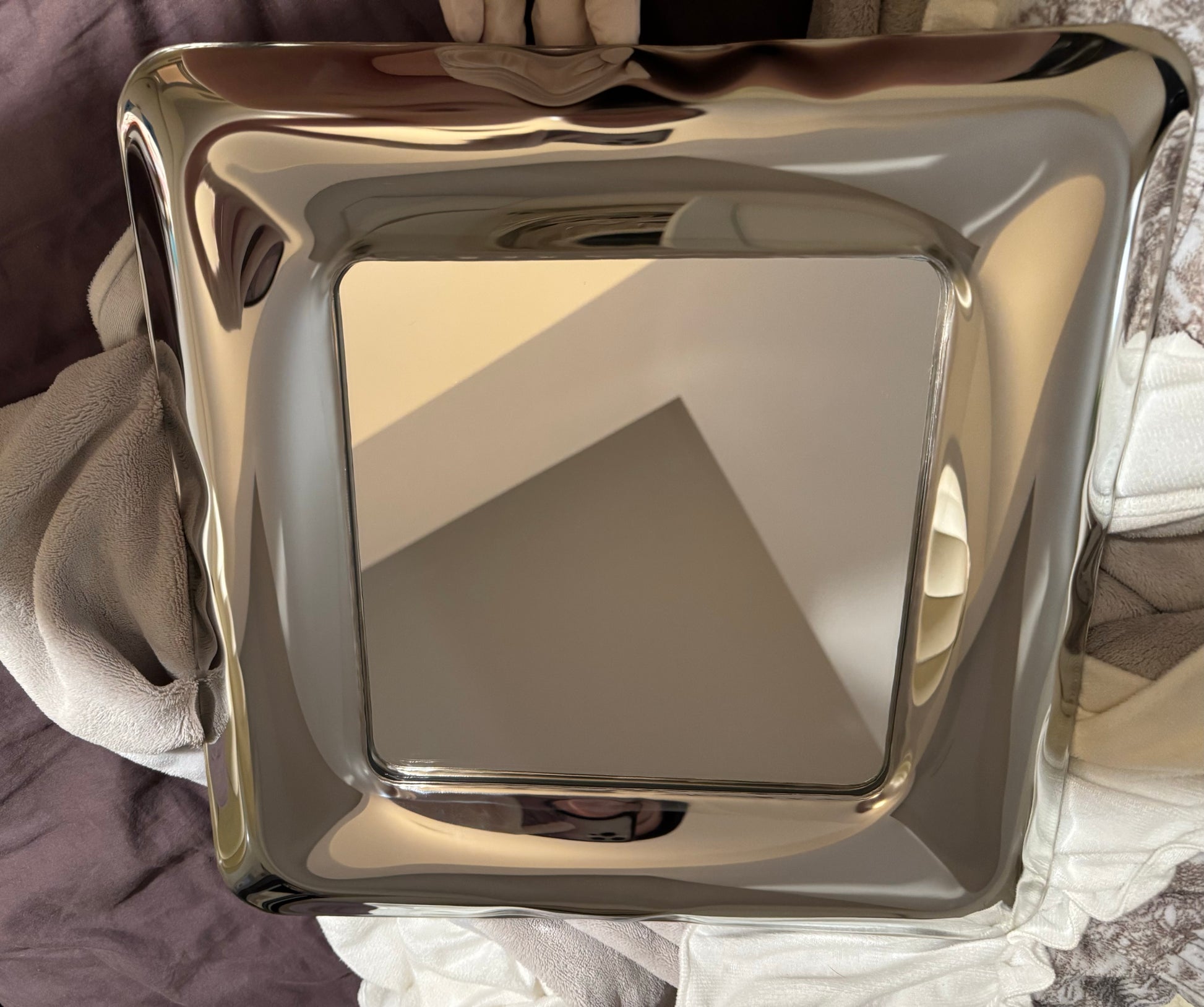 Irregular Polished Stainless Steel Mirror - 36x36cm Handcrafted Fluid Sculpture, Modern Square Wall Art & Collectible Decor