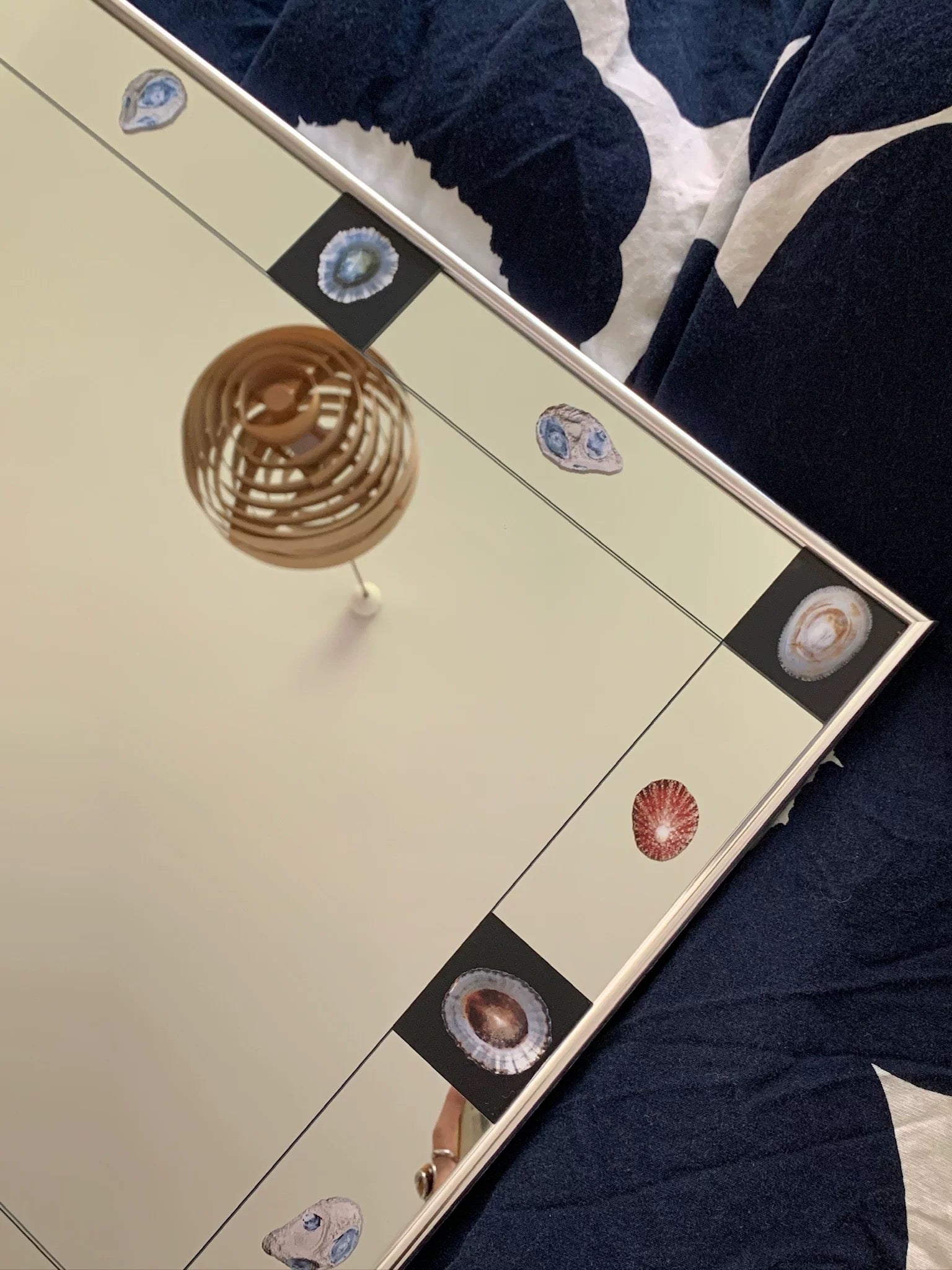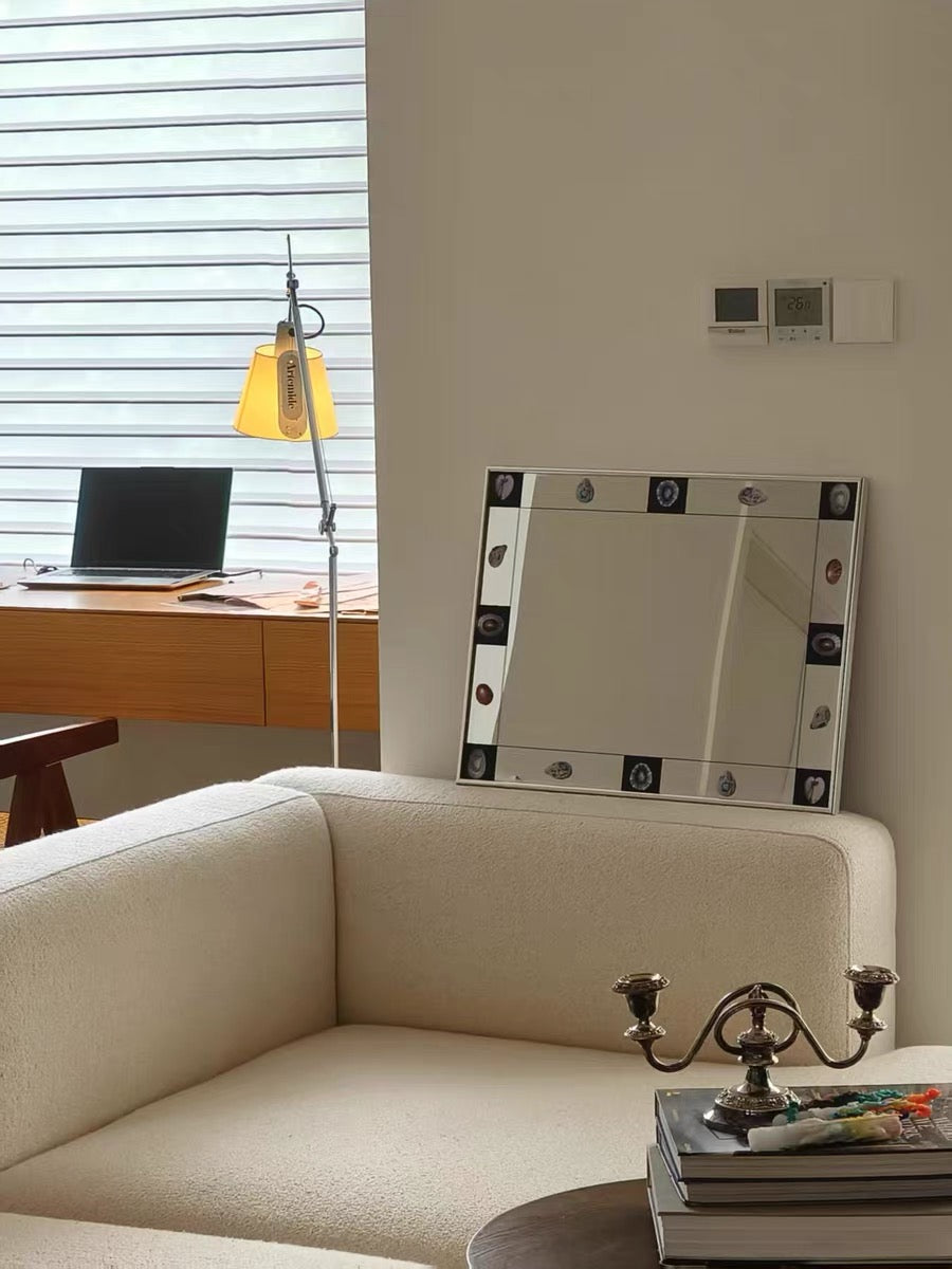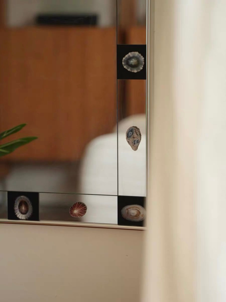 This rectangular mirror is framed with a checkerboard of seashell motifs, evoking treasures gathered from the shore. But beyond coastal nostalgia, it speaks to a new aesthetic we call Urban Seashell Worship - a playful yet profound celebration of bringing nature's fragments into the modern home. It's not just seaside romance; it's a way of creating rituals of beauty in everyday city life.