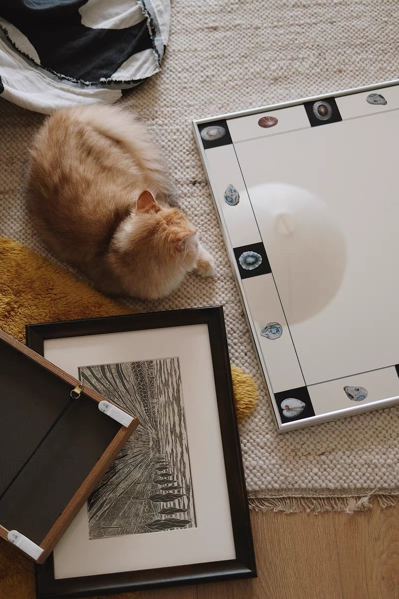 Crafted with an aluminum alloy frame and acrylic glass mirror, each piece is accented with fine art micro-print seashell designs. Every detail feels like an artifact reimagined for contemporary interiors. Hang it vertically in an entryway, style it horizontally above a console, or let it lean casually against a wall — whichever way, the Shell Frame Mirror becomes a statement of eclectic, artistic living.
